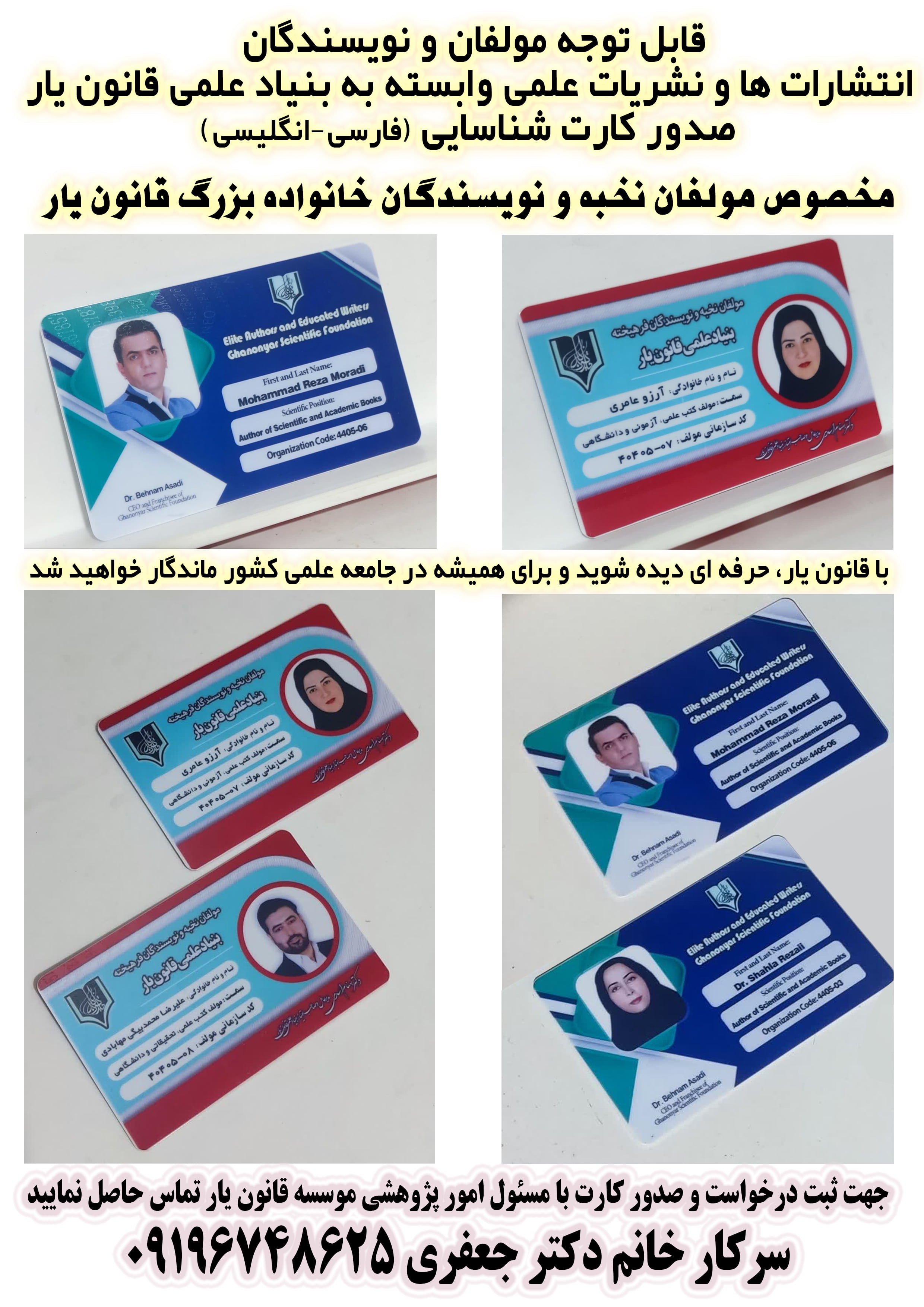 با کارت شناسایی مولفان فرهیخته بنیاد علمی قانون یار در جامعه علمی کشور برجسته و بیشتر دیده شوید